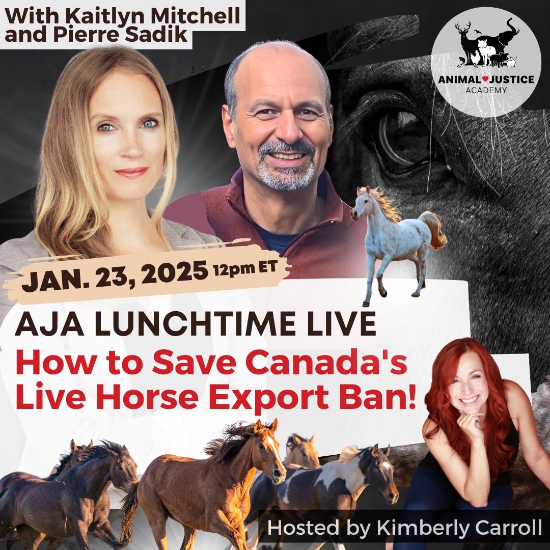 Join us for our AJA Lunchtime Live on Thursday, January 23 as Animal Justice's Director of Legal Advocacy Kaitlyn Mitchell and Government & Legislative Affairs Counsel Pierre Sadik get us prepared for this last-chance fight for the horses enduring live export.