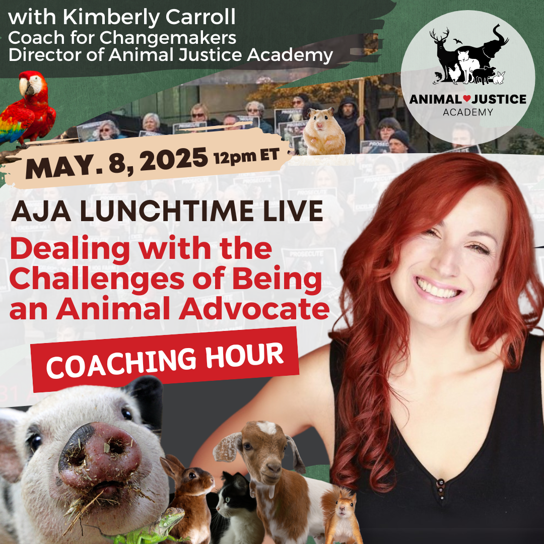 We offer a self-paced course and ongoing live panels & workshops in becoming effective & enduring advocates for animals through politics, media, community engagement, policy, promotion of veganism, and public outreach. Sign up for free at www.animaljusticeacademy.com.